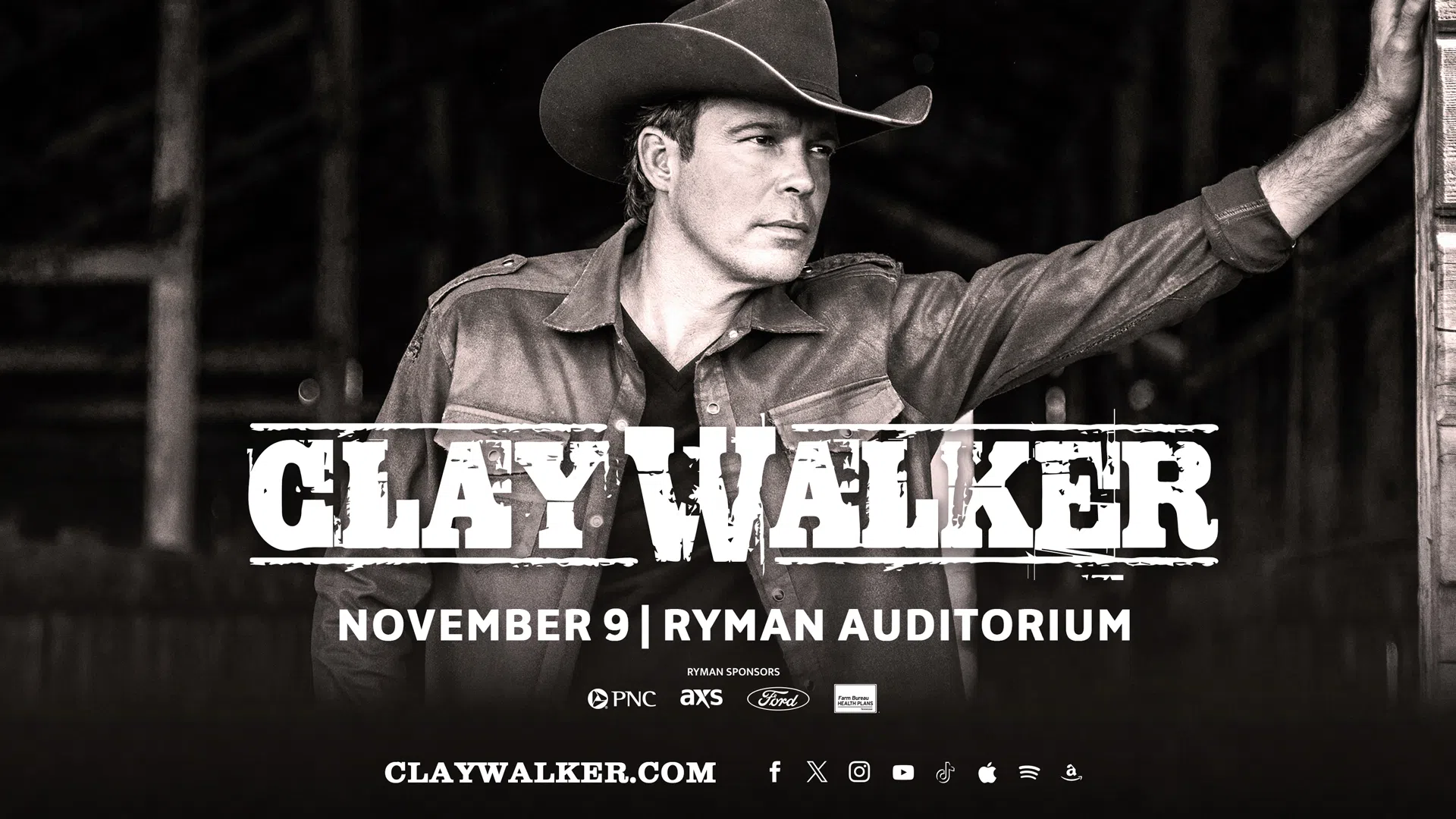 Y’all 106.7 artist, Clay Walker, is playing the Mother Church of Country Music on November 9th!
