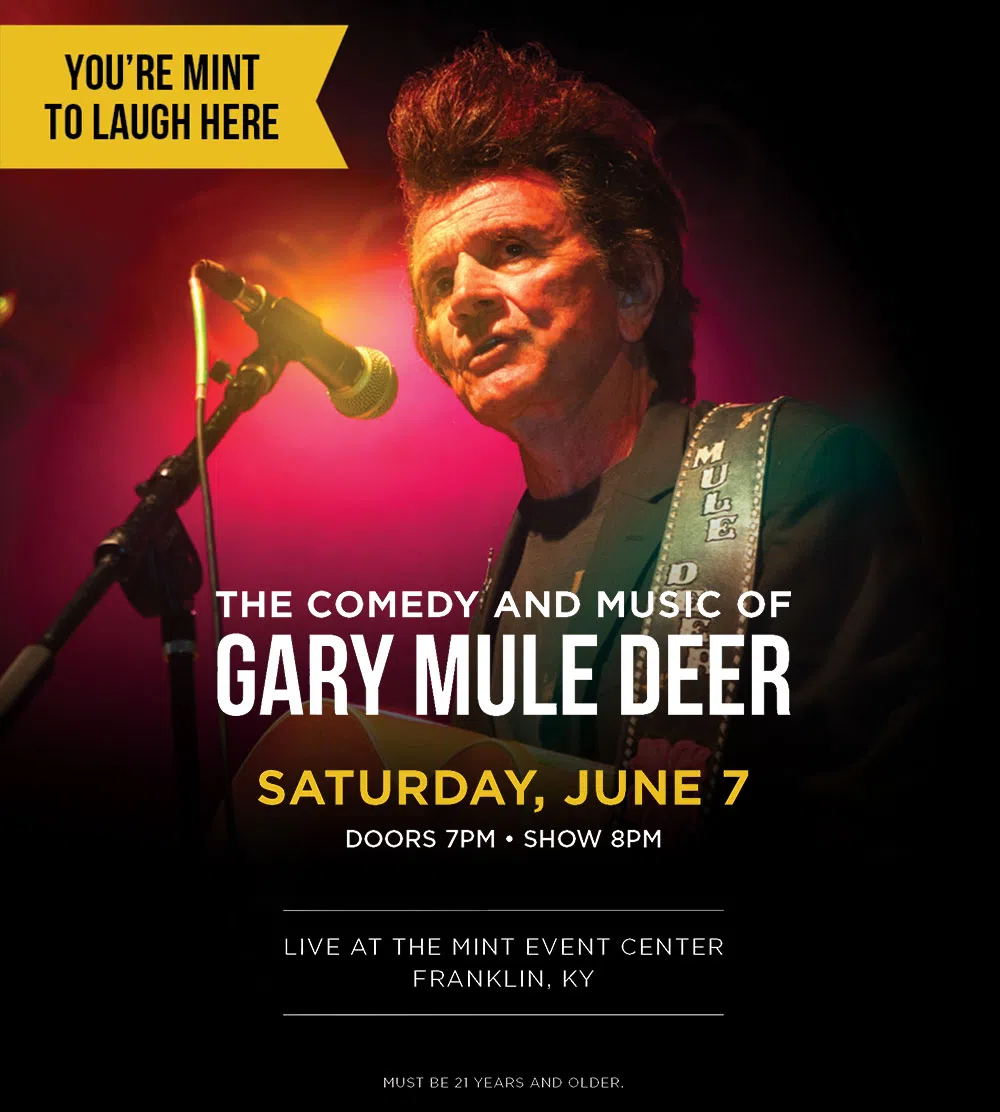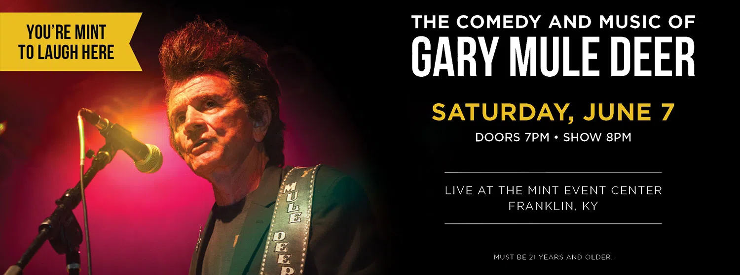 See Gary Mule Deer live at The Mint Event Center in Franklin, KY on Saturday, June 7th at 8pm. Gary Mule Deer’s combination of comedy and music has set him apart as one-of-a-kind.