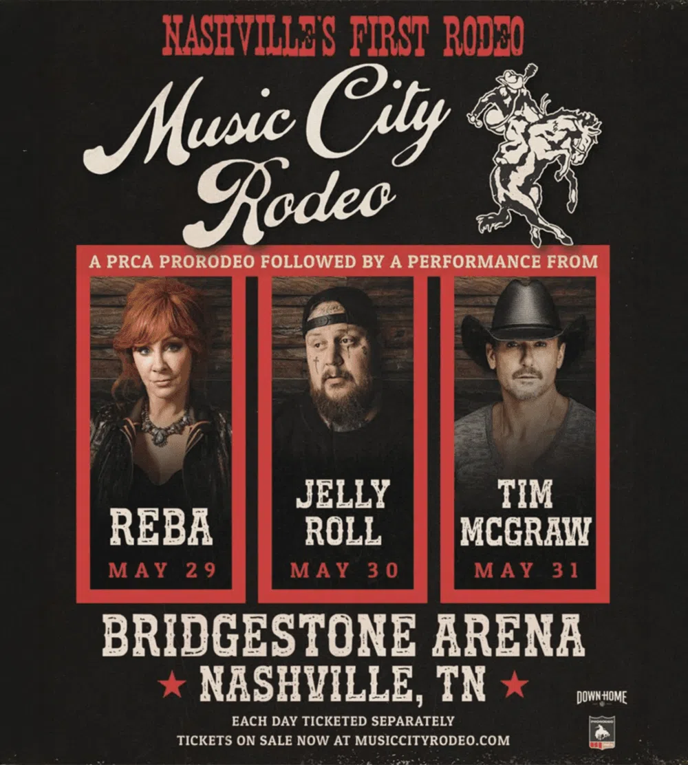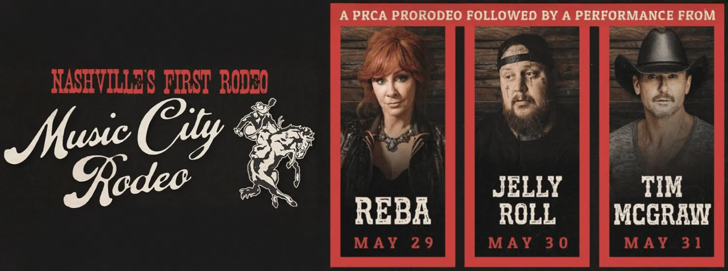 The Music City Rodeo rides into town May 29th-May31st at Bridgestone Arena! Y’all do not want to miss this exciting weekend that combines professional rodeo competitions and live performances from some of your favorite Y’all 106.7 artists, Reba, Tim McGraw, and Jelly Roll!